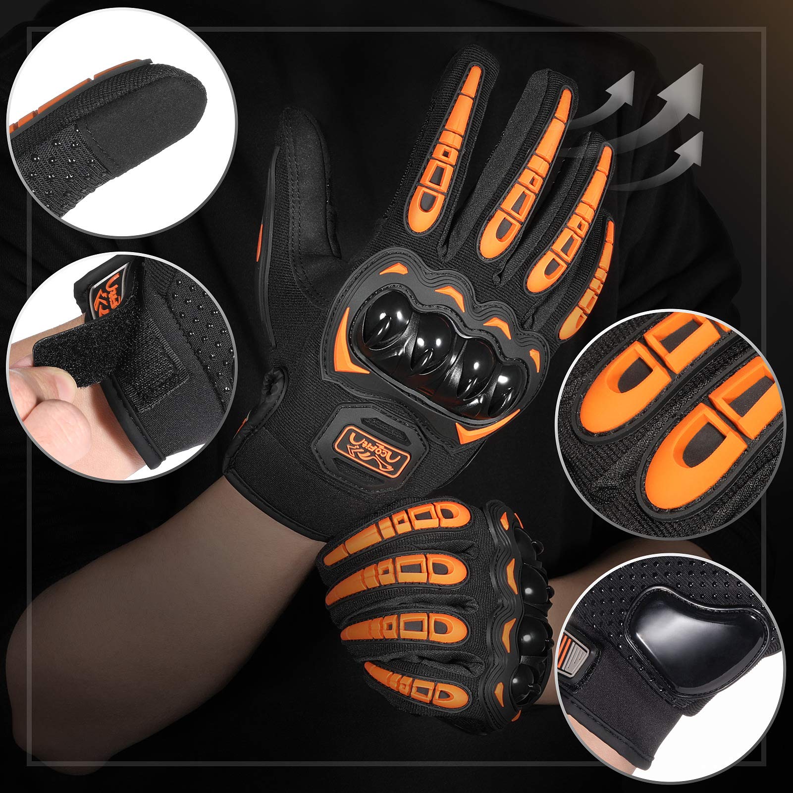 COFIT Gants de Moto Homologués CE, Gants à Écran Tactile Plein-Doigt pour la Course de Moto, VTT, Escalade, Chasse, Randonnée et Autres Sports de Plein Air - Orange M