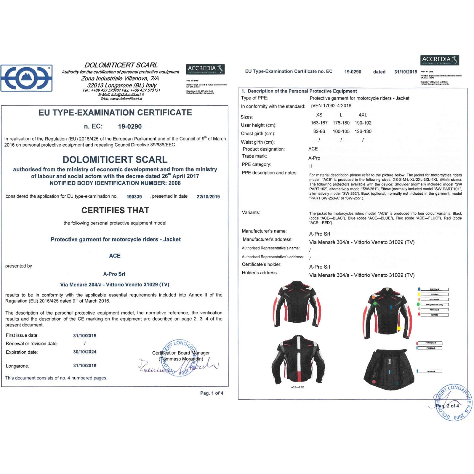 - La protection dorsale approuvée CE peut être achetée sur demande. Disponible en TAILLES: S, M, L. NIVEAU 1 ou 2. CODE protection dorsale CEP-L1 CEP-L2