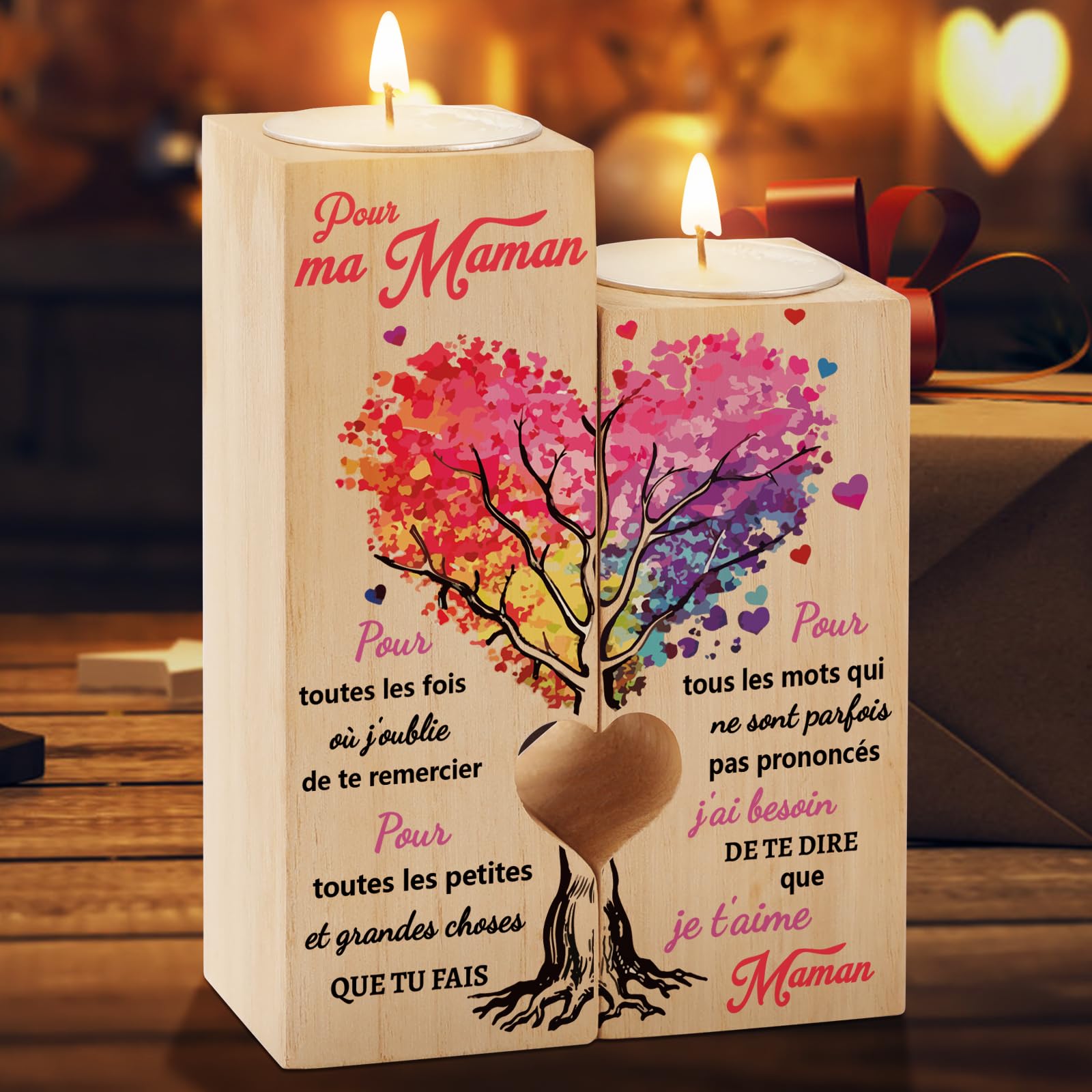 - 【Le meilleur cadeau pour maman】Nos bougeoirs sont fabriqués en bois naturel et chaque pièce est unique dans son motif, un cadeau unique pour maman, pour lui rappeler qu'elle est la meilleure mère du monde.