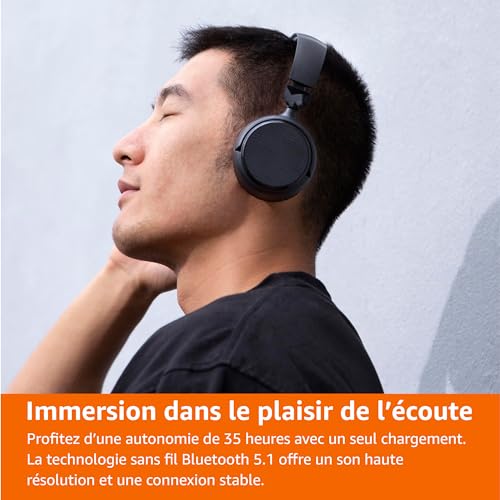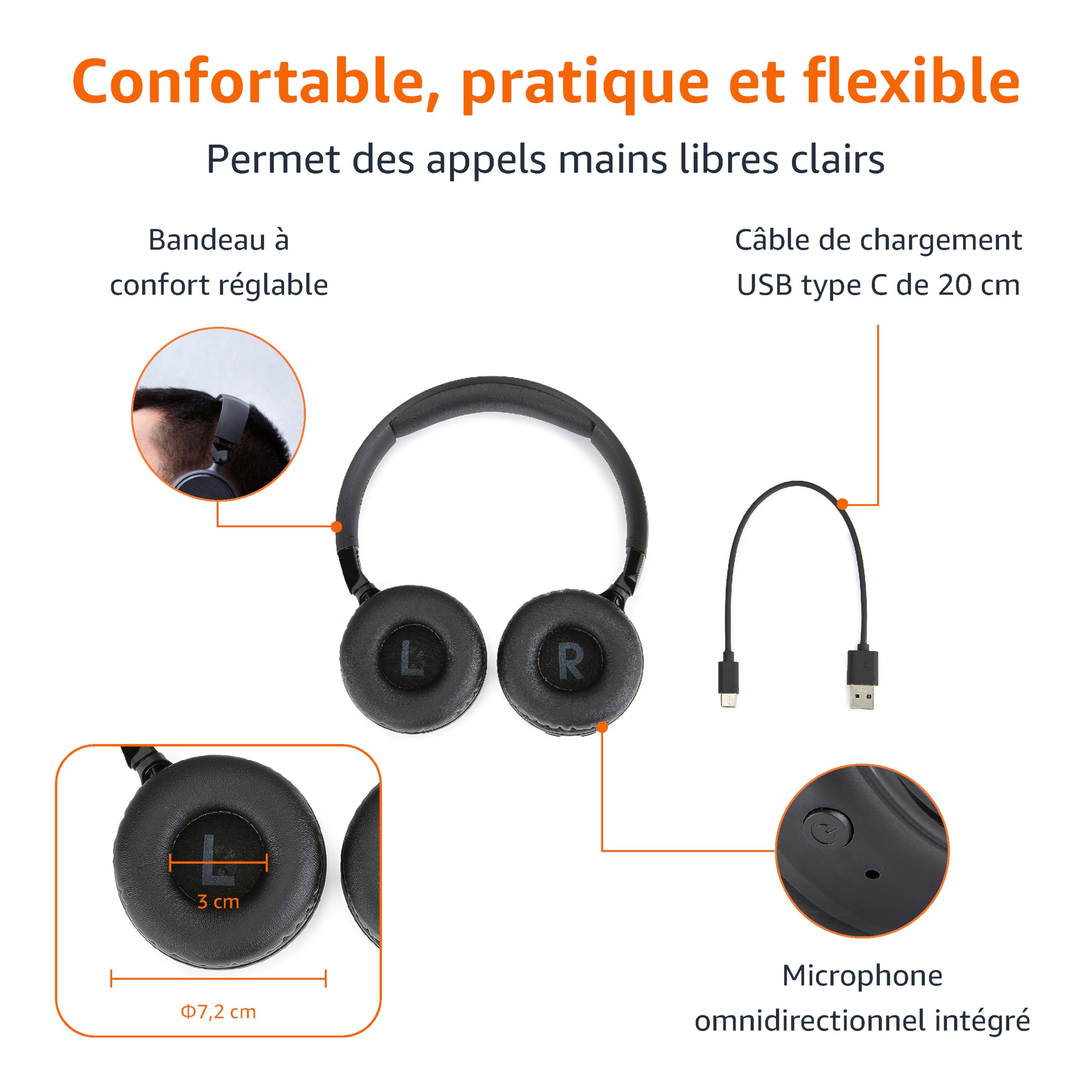 Amazon Basics Casque supra-auriculaire Bluetooth sans fil - 35 heures d’autonomie - Noir