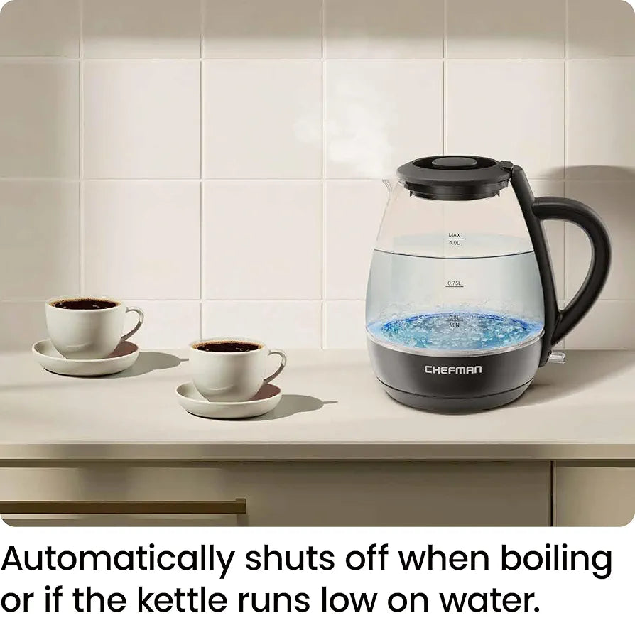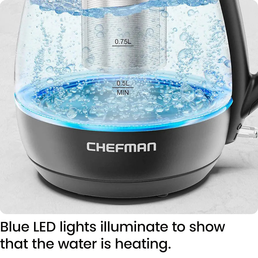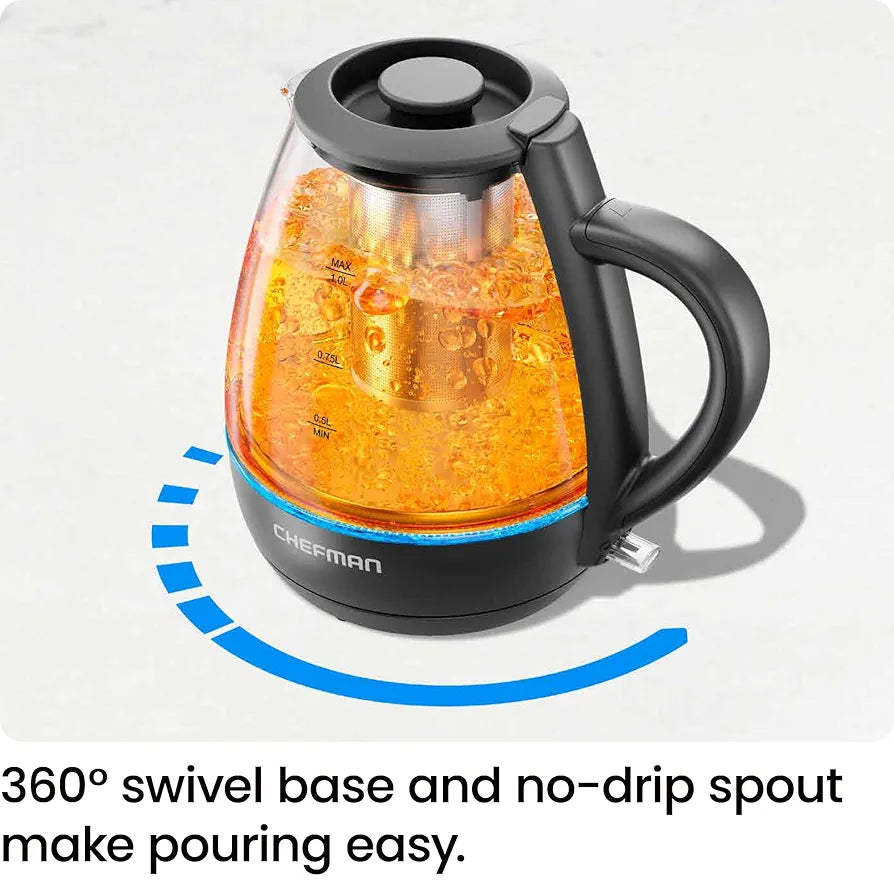 Chefman Electric Kettle with Tea Infuser, 1L 1500W, Removable Lid for Easy Cleaning, Boil-Dry Protection, Stainless Steel Filter, BPA Free, Auto Shut Off Hot Water Boiler, Small Electric Tea Kettle