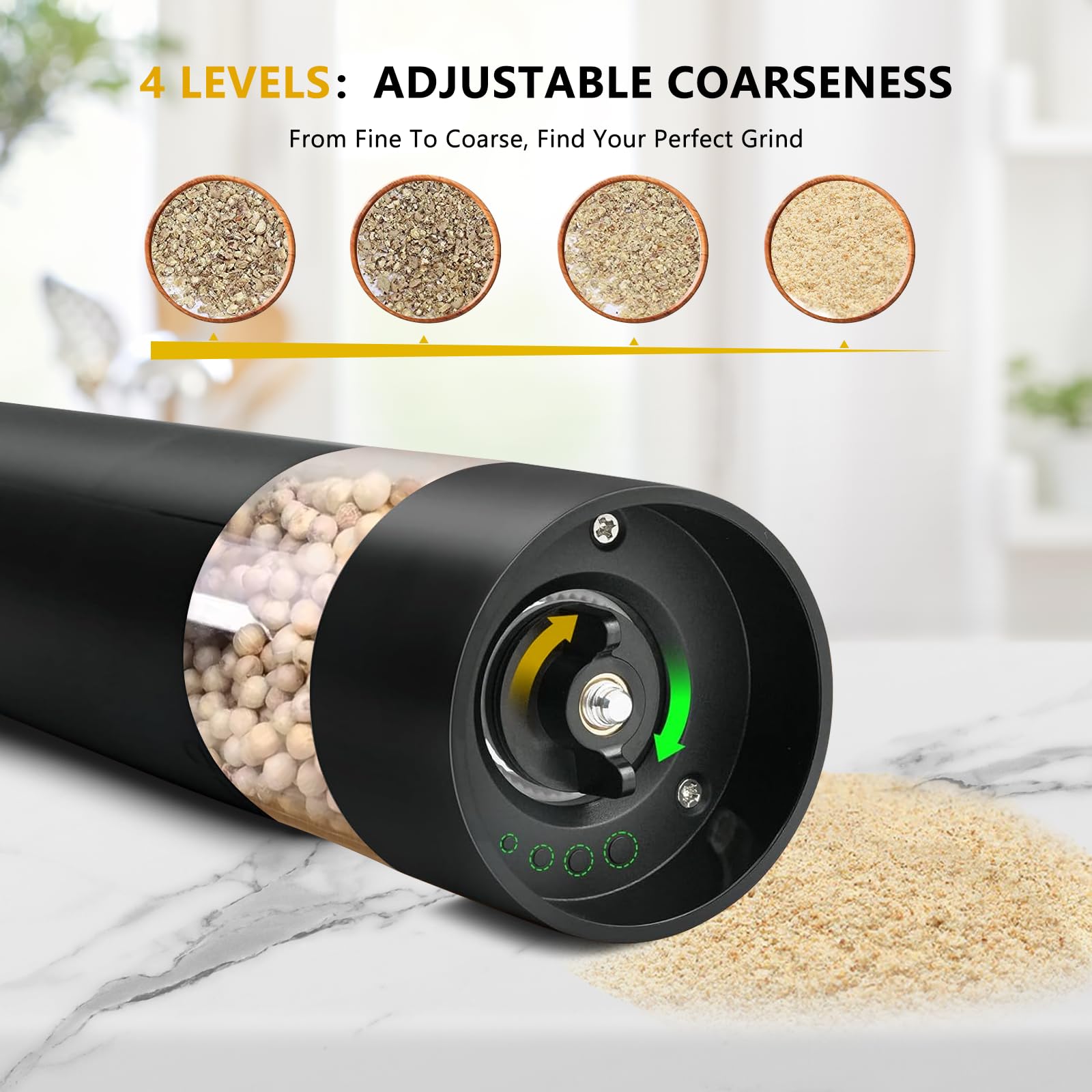🧂 مطاحن ملح وفلفل كهربائية قابلة للشحن – طحن قابل للتعديل بلمسة واحدة ⚡ مثالية للمطبخ والشواء